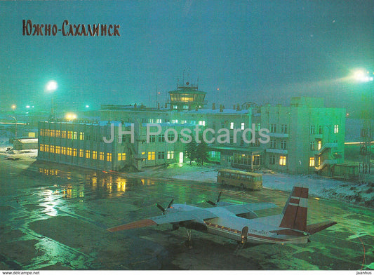 Yuzhno-Sakhalinsk - Airport Terminal - airplane - bus - 1990 - Russia USSR - unused