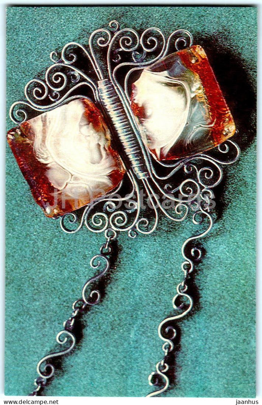 adornment by G. Ivanova - amber - metal - applied art - Latvian art - 1963 - Latvia USSR - unused