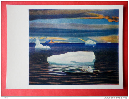 painting by Rockwell Kent - Eskimo in the Kayak . Northern Greenland - art of USA - unused