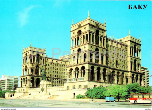 Baku - The building of the Government of the Azebaijan SSR - bus - 1985 - Azerbaijan USSR - unused