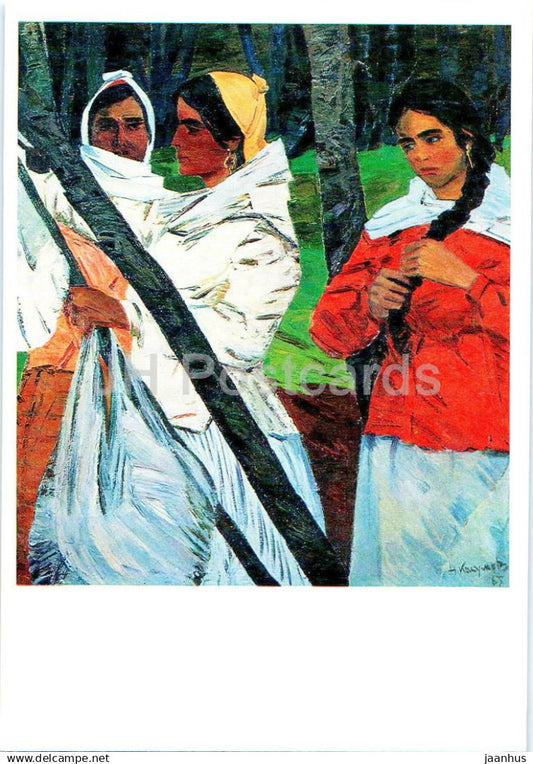 painting by Nadir Kasumov - Lankaran Girls , 1967 - azerbaijan art - unused