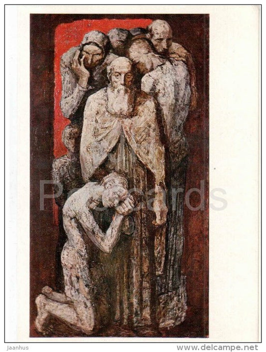 painting by Svetlin Rusev - People saying goodbye to Patriarch Evtimiy , 1969 - bulgarian art - unused