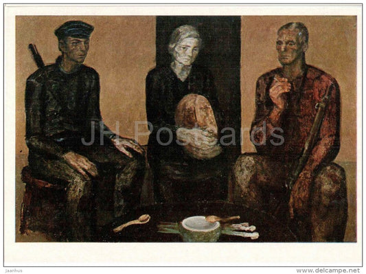 painting by Svetlin Rusev - Bread for the Squad , 1972 - bulgarian art - unused