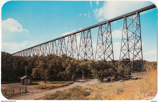 The C P R Railway Bridge on the North Western outskirts at Lethbridge - railway - old postcard - 1954 - Canada - used