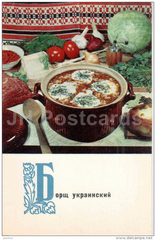 Ukrainian borsch - cabbage - tomato - meat - soup - cuisine - dishes - 1970 - Russia USSR - unused