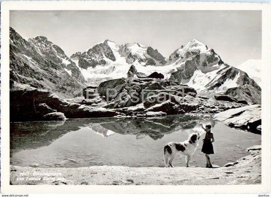 Berninagruppe von Fuorcla Surley - dog - St Bernard - 1095 - old postcard - 1950 - Switzerland - used