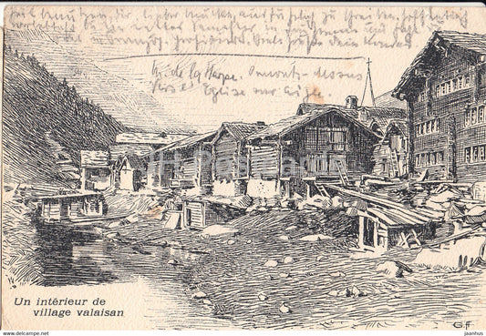 Un Interieur de village Valaisan - illustration - 1911 - old postcard - Switzerland - used