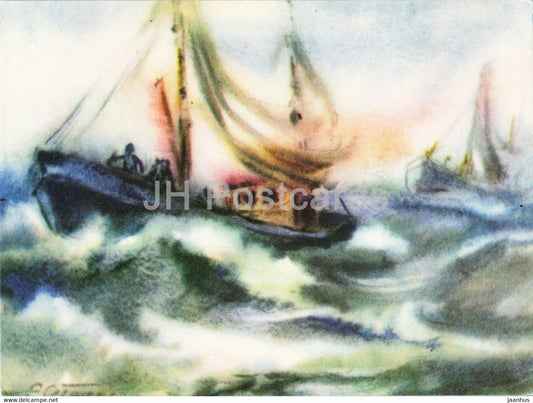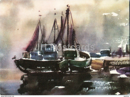 painting by E. Cesnieka - Fishing Boat - Latvian art - 1963 - Latvia USSR - unused