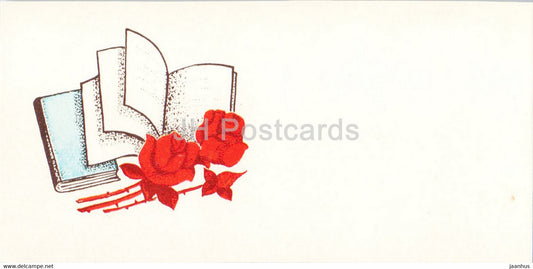 Mini Greeting Card - by S. Dislere - book - roses - 1979 - Latvia USSR - unused