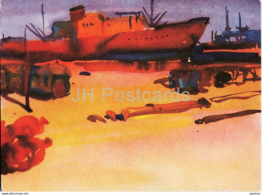 painting by N. Petraskevica - Port - Ship - Latvian art - 1963 - Latvia USSR - unused