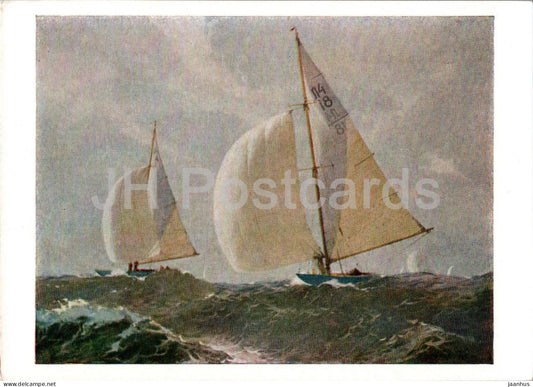 painting by E. Kalnins - Seventh Baltic Regatta 1953 - sailing boat - sport - Latvian art - 1963 - Russia USSR - unused