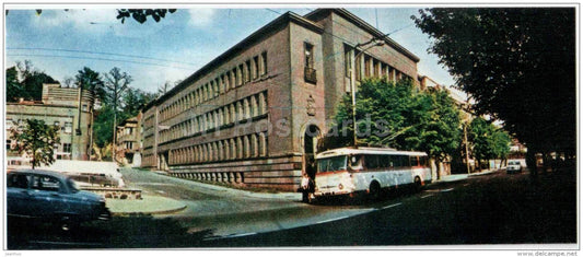 Public Library - trolleybus - Kaunas - mini postcard - 1971 - Lithuania USSR - unused