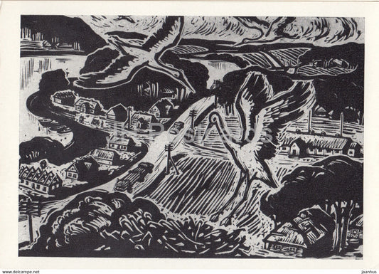 painting by Vytautas Valius - In the Soviet village of Samogitia - Lithuanian art - 1965 - Russia USSR - unused