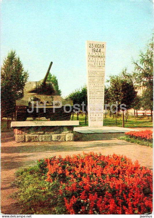 Pskov - obelisk in honor of the liberation of the city - tank - military postal stationery - 1971 - Russia USSR - unused