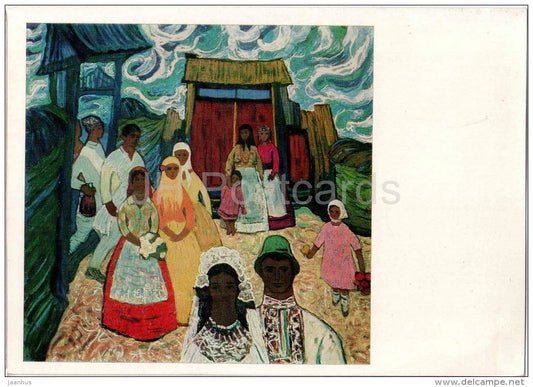 painting by V. Zazerskaya - The Newly-Weds , 1966 - moldavian art - unused