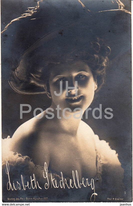 German actress Lisbeth Steckelberg - hat - movie - Film - Jos Paul Bohm - old postcard - Germany - unused