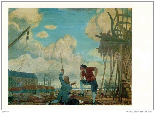 painting by Mstislav Dobuzhinsky , Peter the Great in Holland , 1910 - large format postcard - russian art - unused