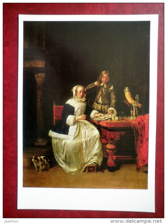 large format postcard - painting by Gabriel Metsu , The Doctor`s Visit , 1660 - dog - dutch art - unused