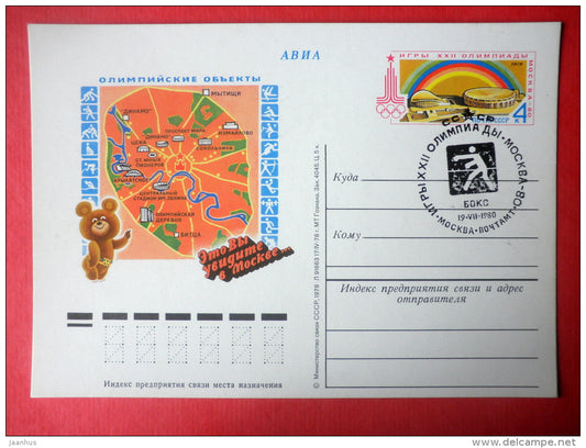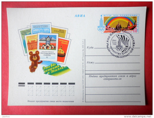 Moscow Olympic Games Places of Interest - mascot Misha the Bear - stamped stationery card - 1978 - Russia USSR - unused