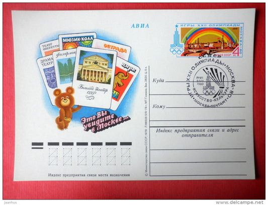 Moscow Olympic Games Places of Interest 3- mascot Misha the Bear - stamped stationery card - 1978 - Russia USSR - unused