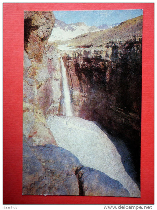 80 meters high waterfall in Opasniy canyon . Slopes of the volcano Mutnovskii - Kamchatka - 1981 - Russia USSR - unused