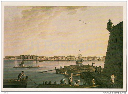 painting by Benjamin Patersen - View of the Palace Embankment in St. Petersburg , 1793 - ship - swedish art - unused