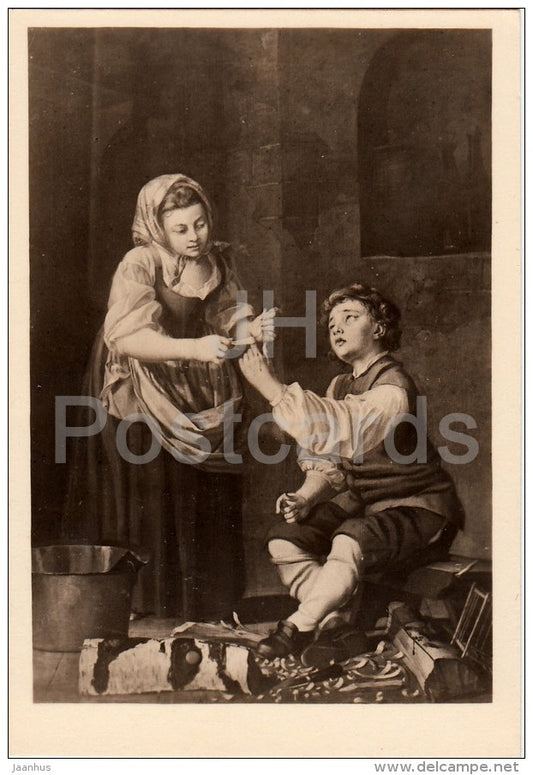 painting by Pehr Hilleström - Boy hurts his finger - Swedish art - old postcard - Russia USSR - unused