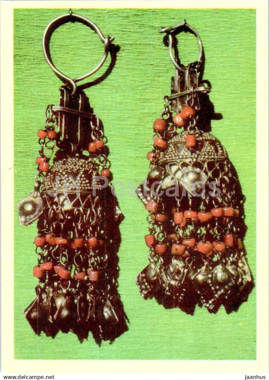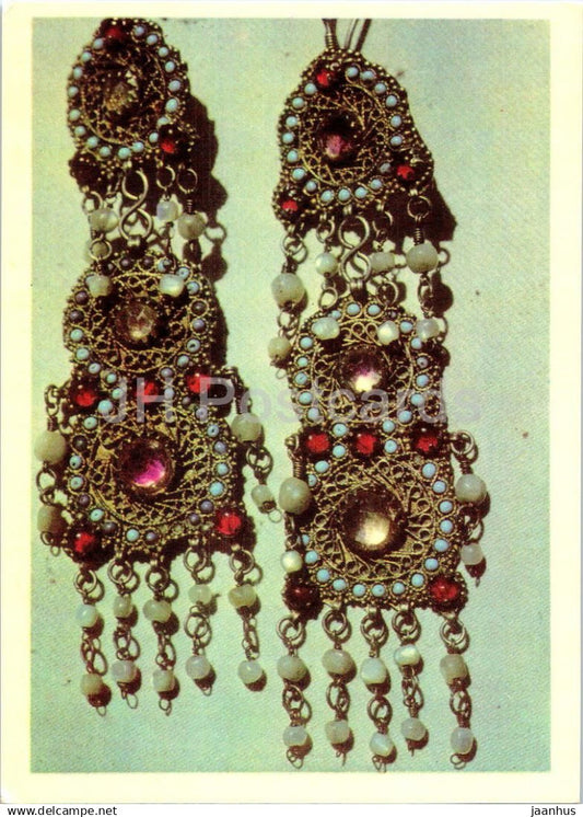 Tajik Jewelry - Gushvori Kafasi Earrings - Tajik Art - 1974 - Tajikistan USSR - unused