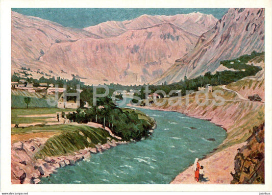painting by Hushbaht Hushvahtov - Alay Valley - Tajik art - 1968 - Russia USSR - unused