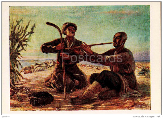 painting by Y. Annanurov - Sheperds , 1946 - folk music - turkmenian art - unused
