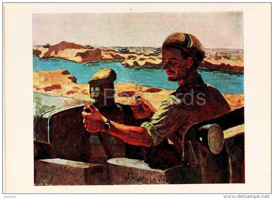 painting by Y. Annanurov - Portrait of Bulldozer driver , 1957 - turkmenian art - unused