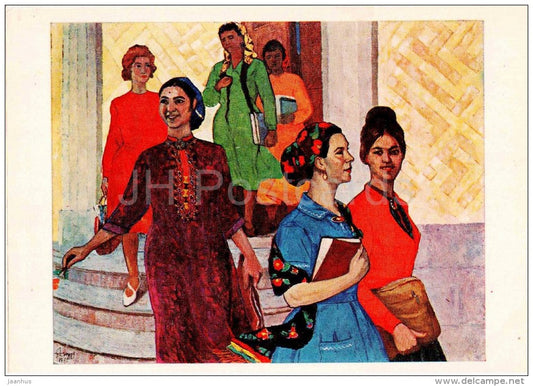 painting by Y. Annanurov - Girls of my country , 1965 - turkmenian art - unused