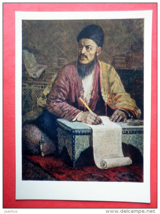 painting by Aikhan Khadzhiyev - Portrait of Poet Makhtumkuli - turkmenian art - unused