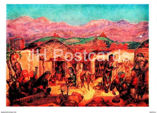 painting by Mazel Ruvim - It gets evening - Weekdays in a Turkmen village - Turkmenian art - 1975 - Russia USSR - unused