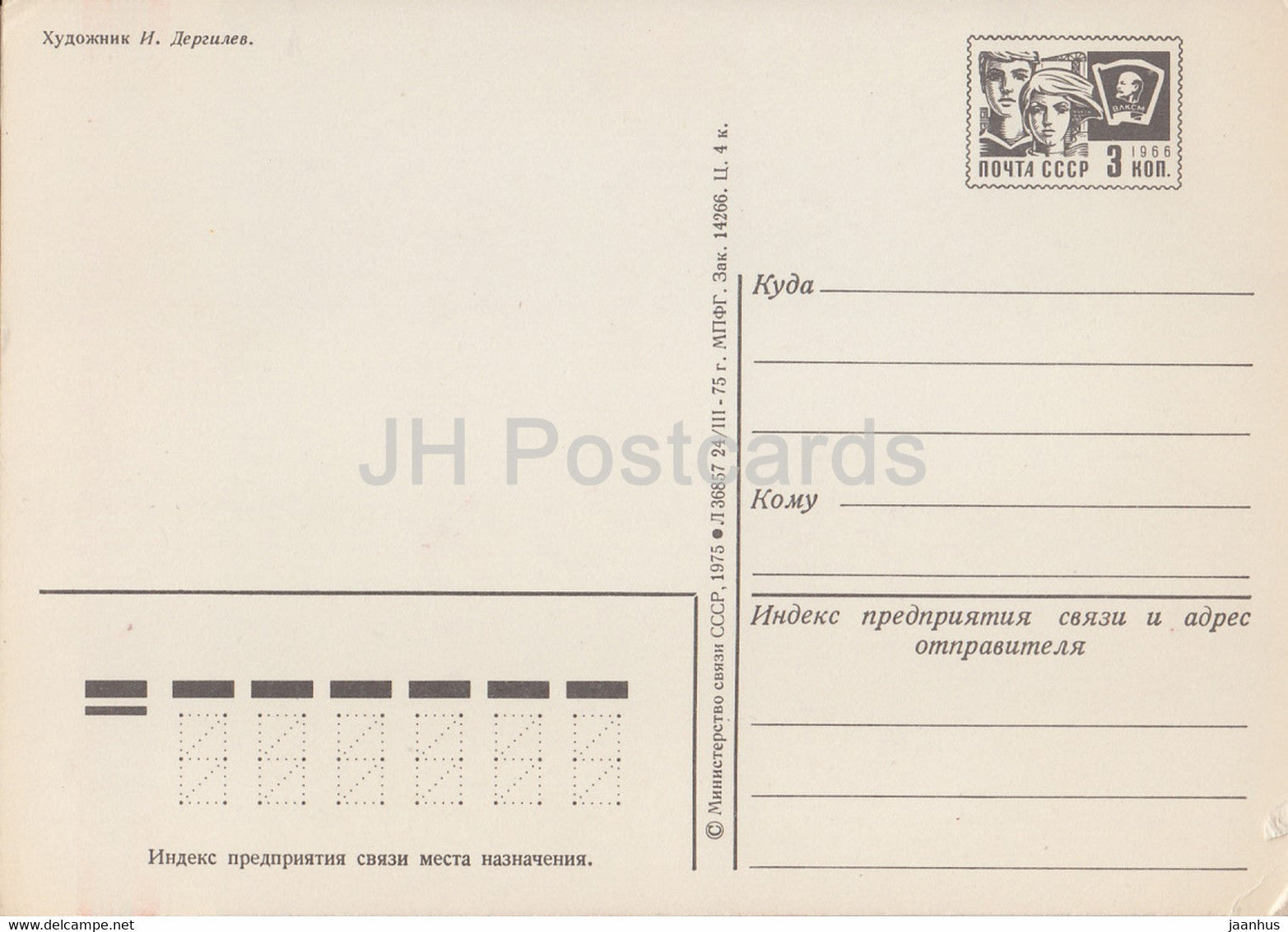 Grußkarte zum Jahrestag der Oktoberrevolution 1917 von I. Dergilyev – Nelken – Blumen – 1975 – Russland UdSSR – unbenutzt