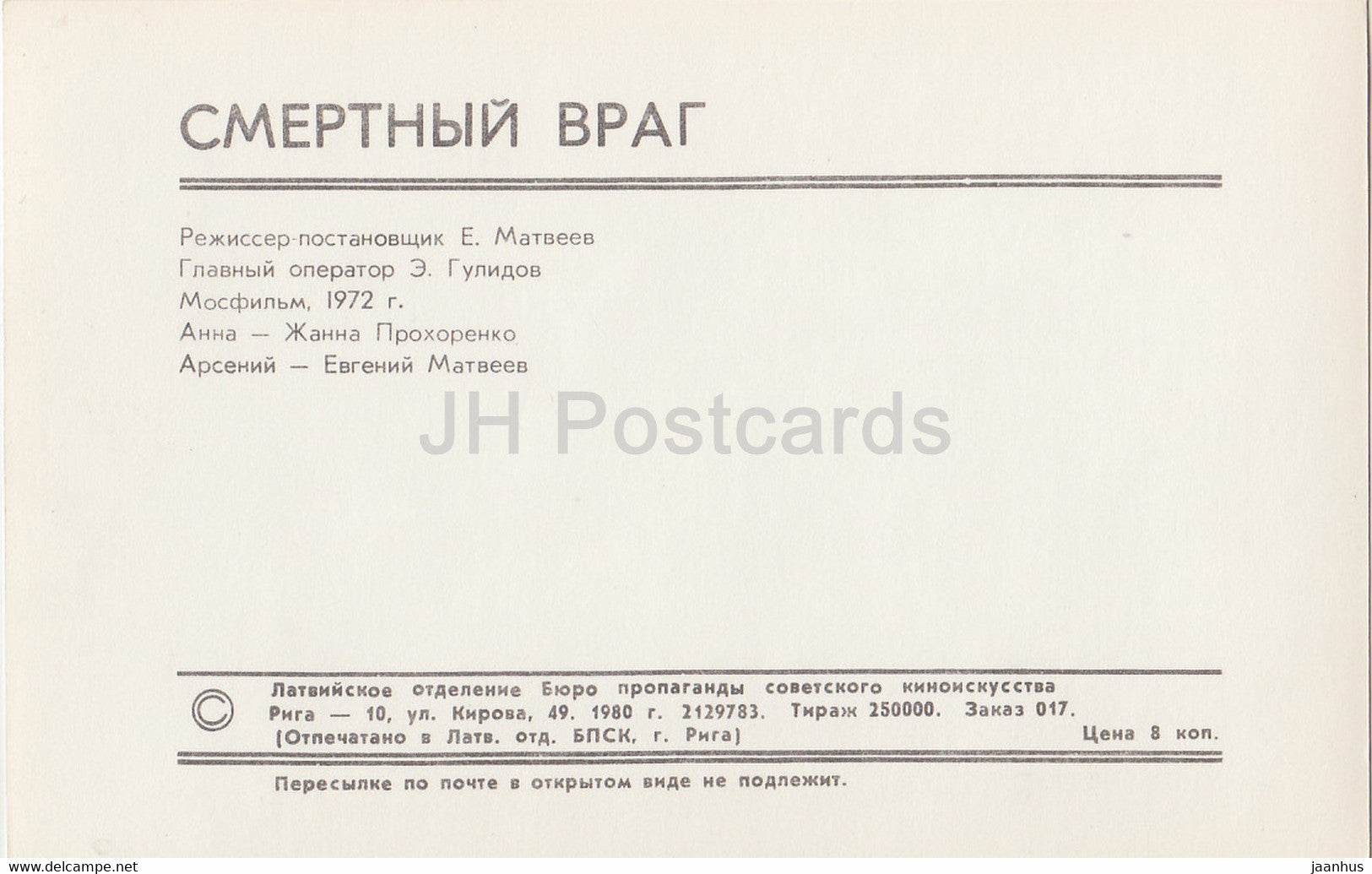 Ein tödlicher Feind – Film – Zhanna Prokhorenko – Evgenyi Matveyev – 1980 – Russland UdSSR – unbenutzt