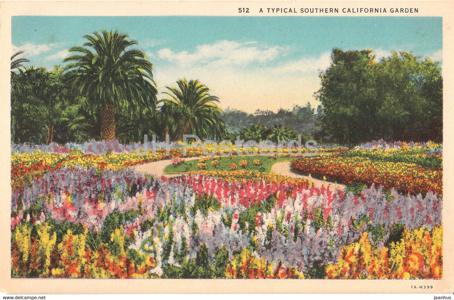 Ein typischer südkalifornischer Garten – 512 – alte Postkarte – Vereinigte Staaten USA – gebraucht