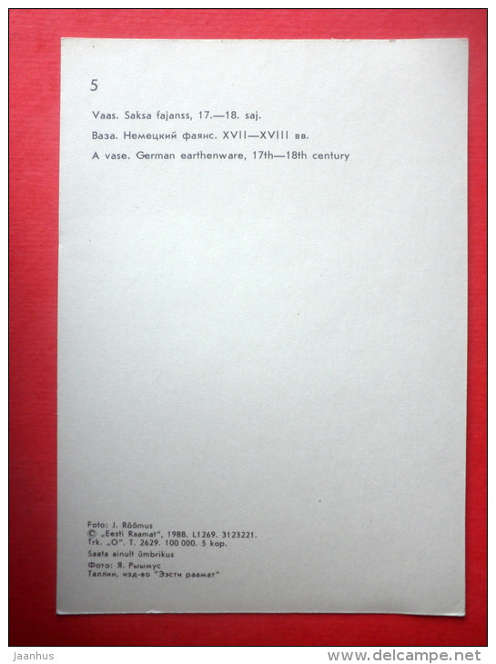 Eine Vase, deutsches Steingut, 17.-18. Jahrhundert – Tallinn – 1988 – Estland UdSSR – unbenutzt