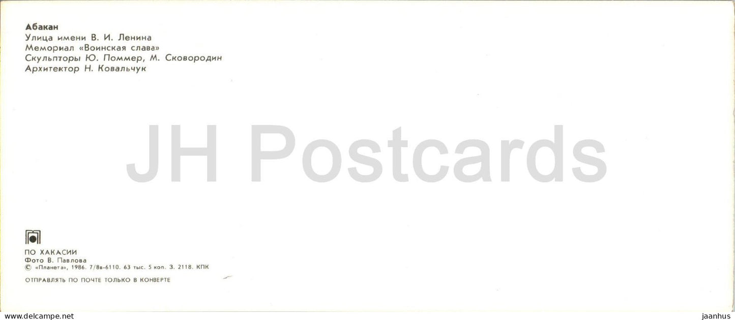 Abakan – Leninstraße – Denkmal für den militärischen Ruhm – Chakassien – 1986 – Russland UdSSR – unbenutzt
