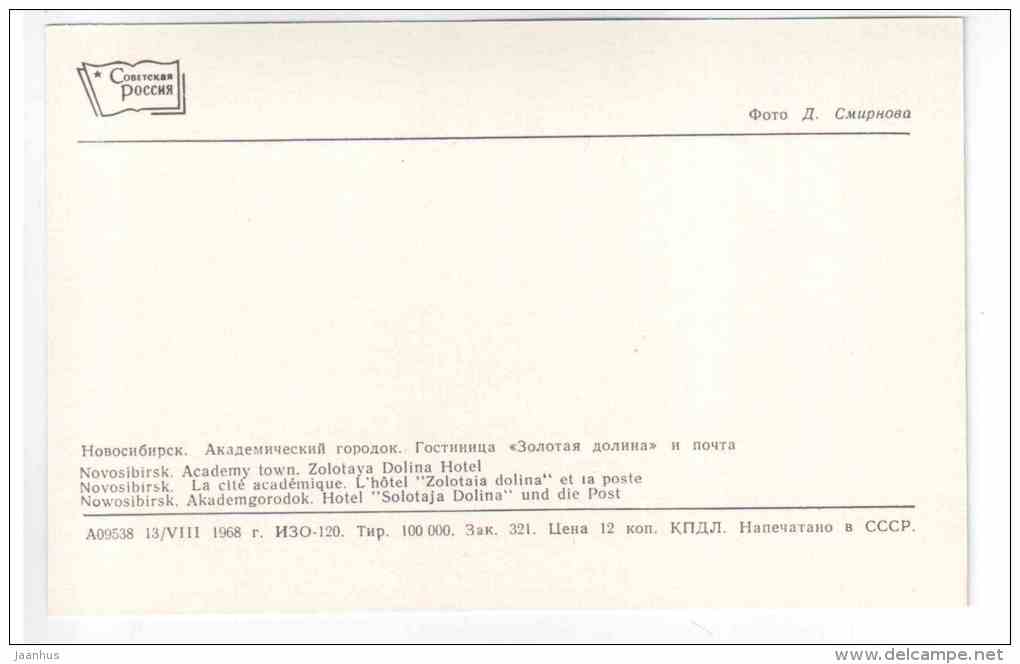 Akademiestadt, Hotel Zolotaya Dolina – Nowosibirsk – 1968 – Russland UdSSR – unbenutzt