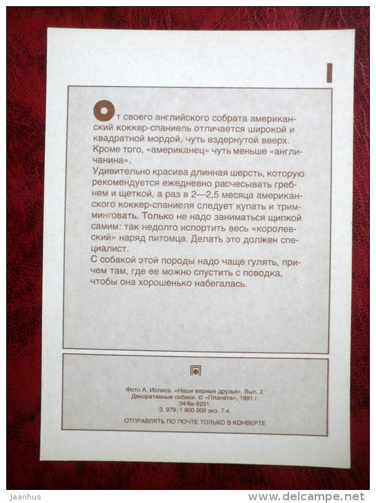 Amerikanischer Cocker Spaniel – Hunde – 1991 – Russland – UdSSR – unbenutzt