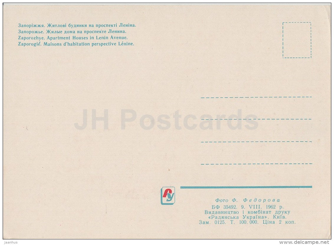 Mehrfamilienhäuser in der Lenin Avenue – Prospekt – Straßenbahn – Saporoschje – 1962 – Ukraine UdSSR – unbenutzt