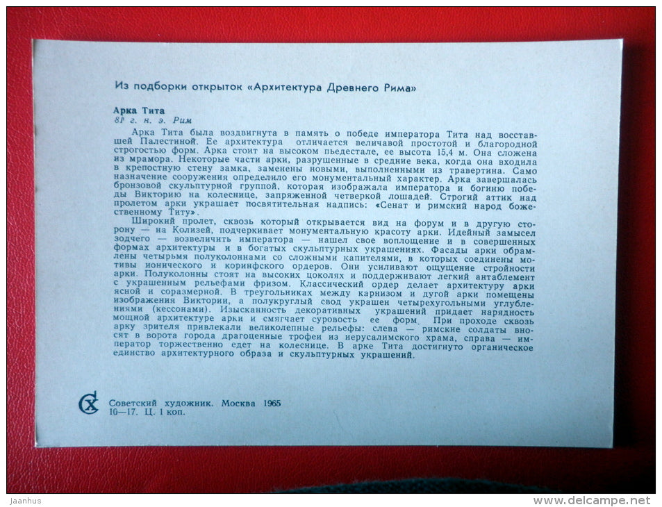 Titusbogen in Rom, 81 n. Chr. – Architektur des antiken Roms – 1965 – Russland UdSSR – unbenutzt