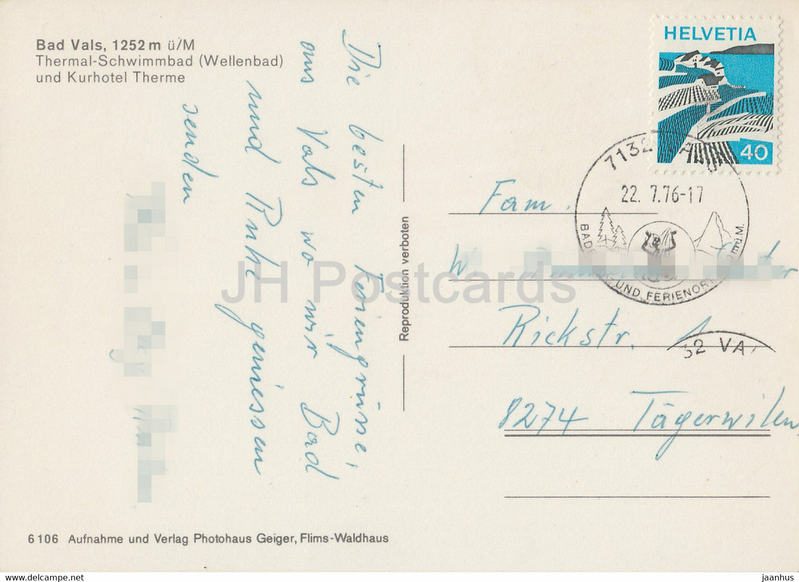Bad Vals 1252 m - Thermal Schwimmbad und Kurhotel Therme - Hotel - Schwimmbad - 1976 - Schweiz - gebraucht