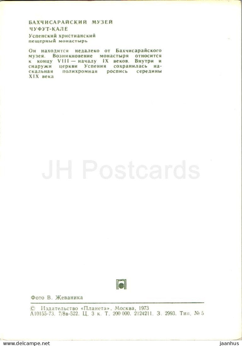 Historisches Museum von Bachtschyssaraj – Tschufut-Kale – mittelalterliches Höhlenkloster Uspenski – Krim – 1973 – Ukraine, UdSSR – unbenutzt