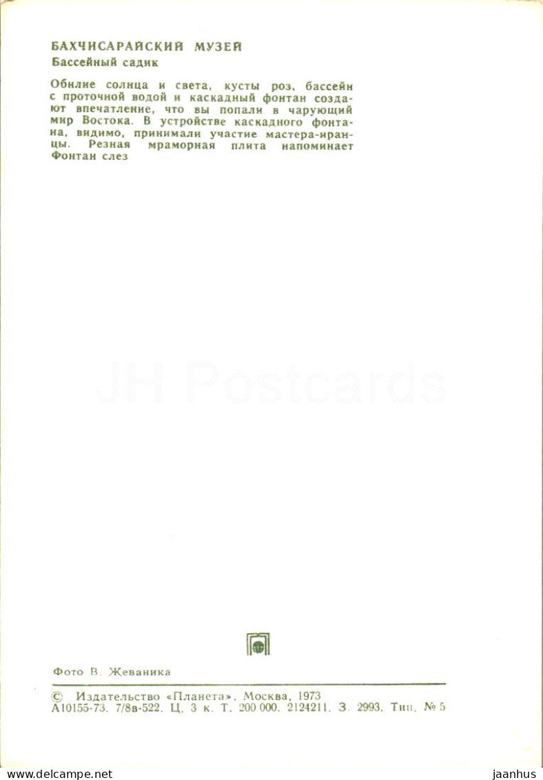 Historisches Museum Bachtschyssaraj – Teichgarten – Krim – 1973 – Ukraine, UdSSR – unbenutzt