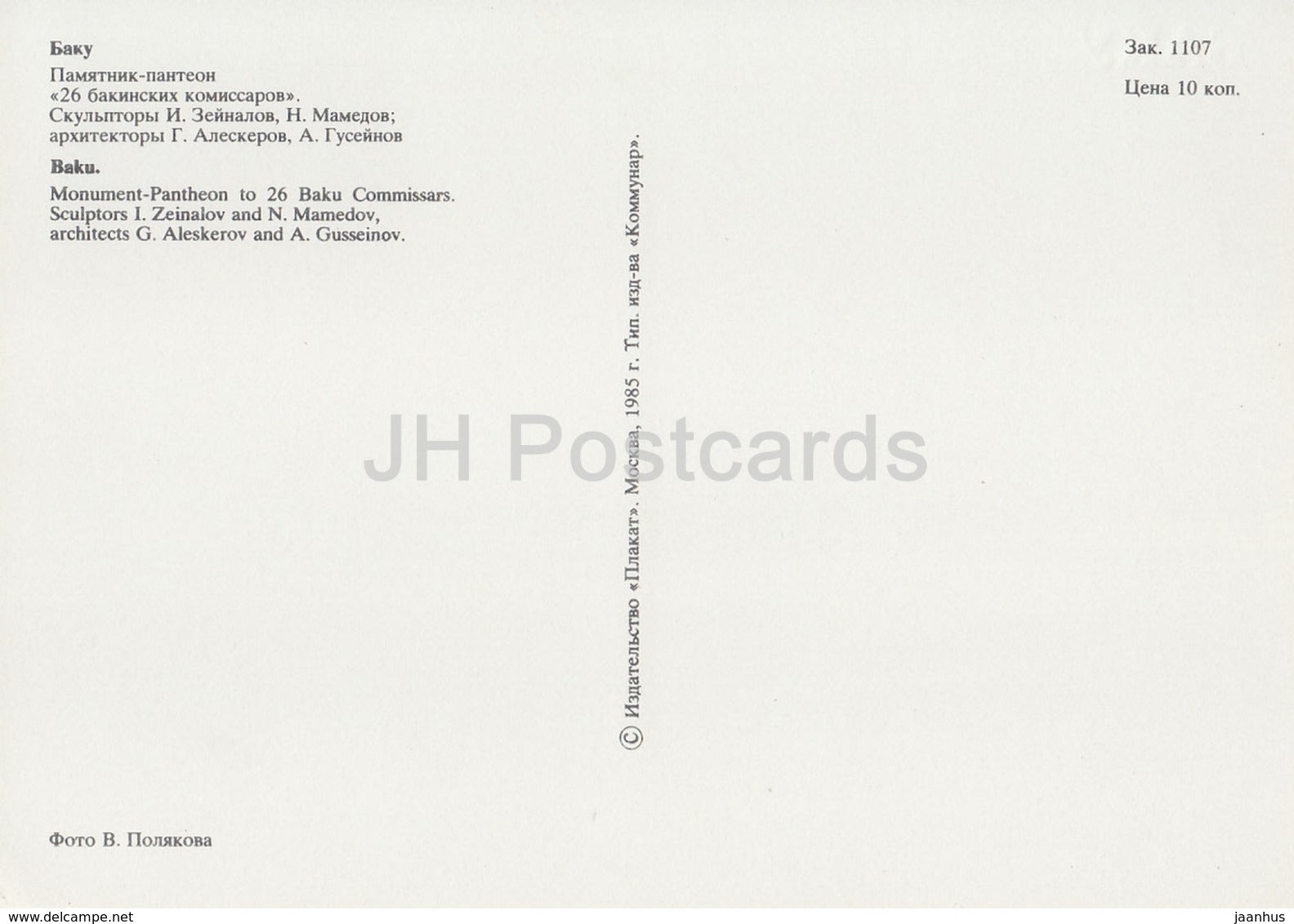 Baku – Pantheon-Denkmal für 26 Baku-Kommissare – 1985 – Aserbaidschan, UdSSR – unbenutzt