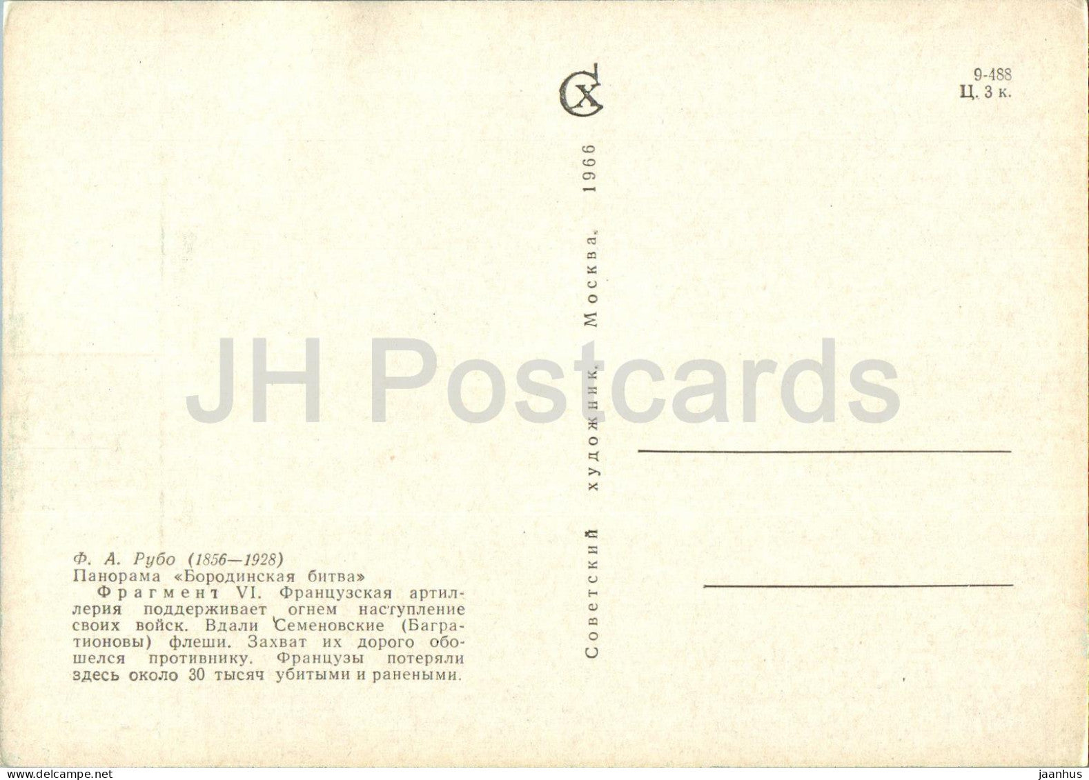 Schlacht von Borodino – Französische Artillerie – Panorama – Gemälde von F. Rubo – 1966 – Russland UdSSR – unbenutzt