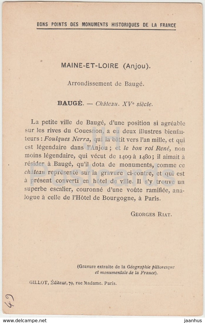 Bauge - Chateau - Les Monuments Historiques de la France - Schloss - alte Postkarte - Frankreich - unbenutzt