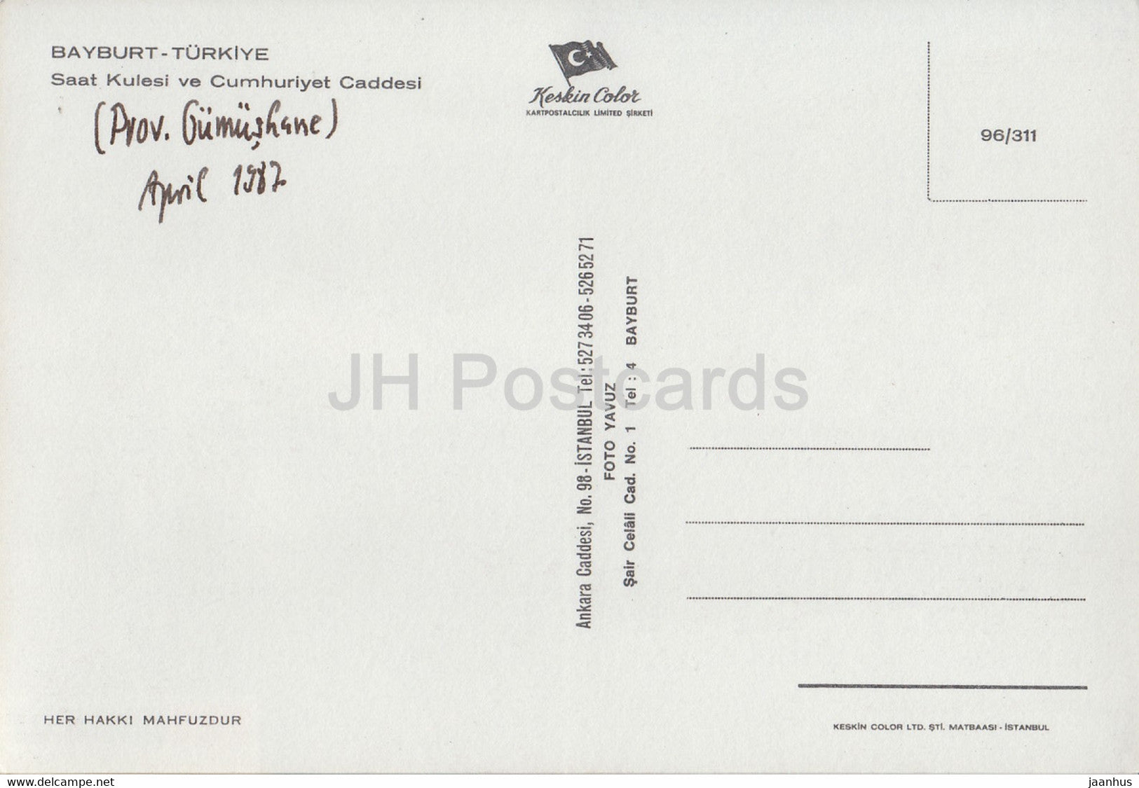 Bayburt – Uhrturm und Cumhuriyet-Straße – 1987 – Türkei – gebraucht